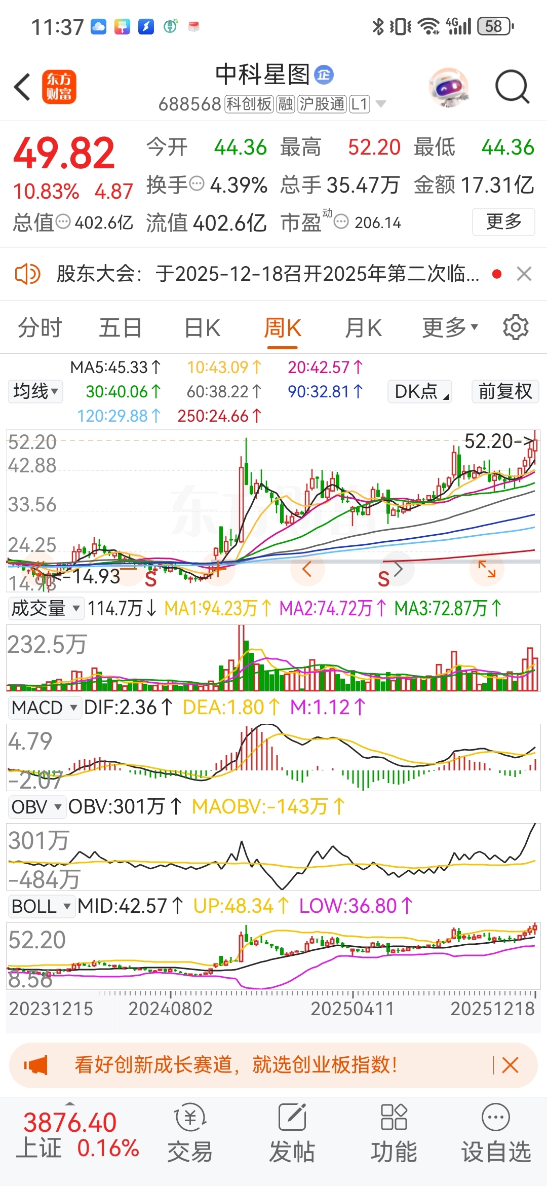 $中科星图(SH688568)$ 不管年底股票价格收在哪里,去年50元调整下来我多次提醒“中科星图”优秀的优质生产力公司,上市以来不“套”人,今天兑现了!!