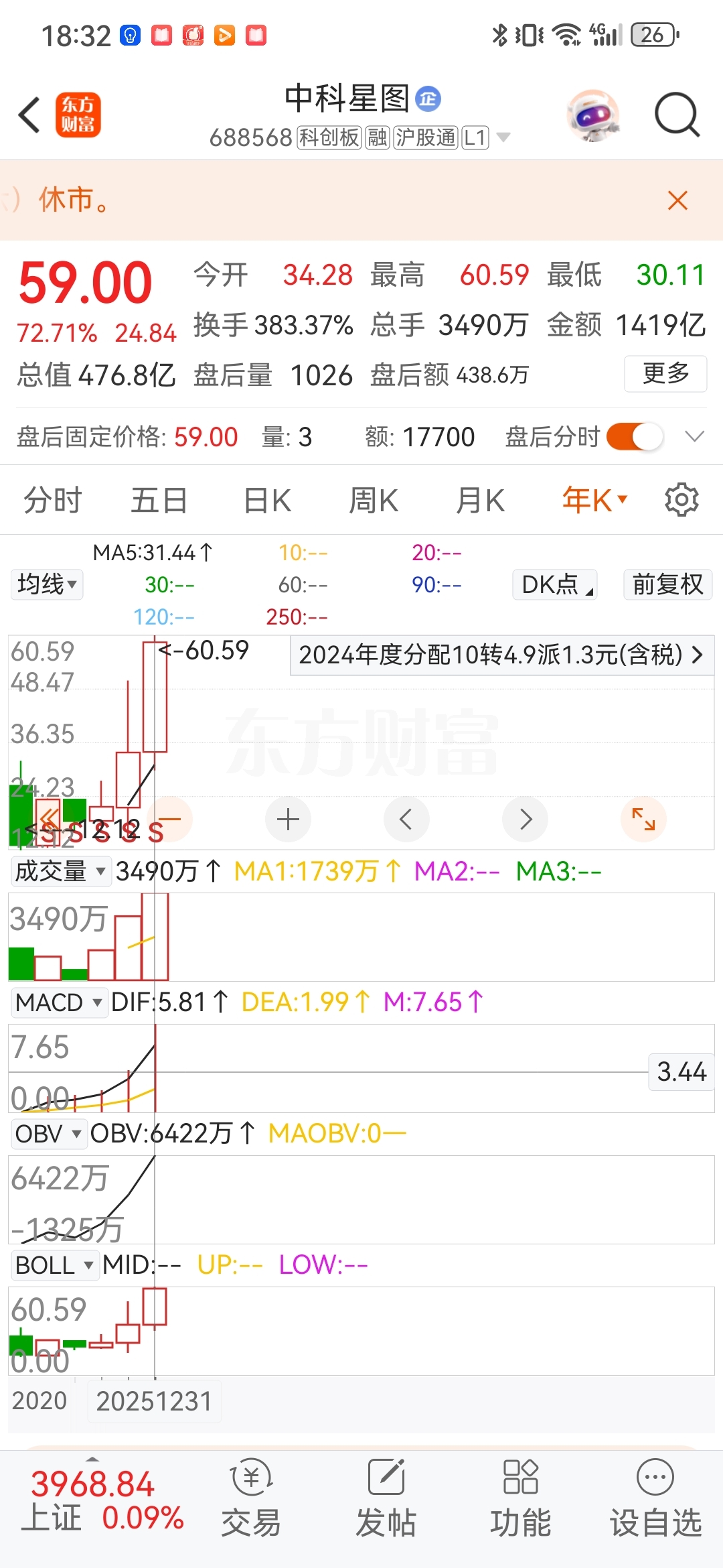 几句话小结:中科星图2025年最后一天近最高价收市,投资人没有“吃套”,应验我始