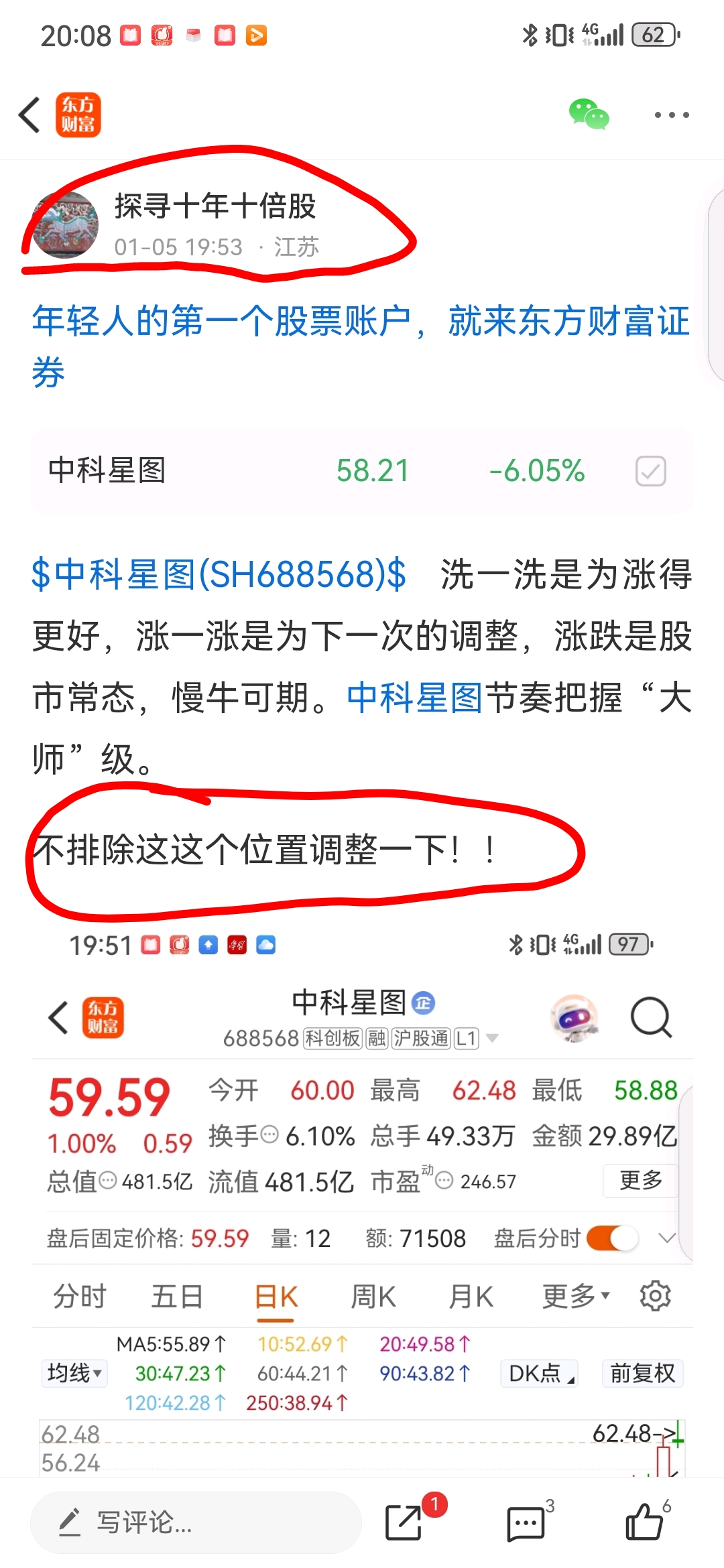 调整不代表趋势结束,且中科星图来很多的“炒手”对标这个对标那个,星图就是“中科星图”,行业在大A无对标公司,上市五年半不套投资人,做短期的不要介入(星图慢牛),涨多了调整一下,调整后再涨,不会暴涨急跌,进二退一,进三退二是常态。