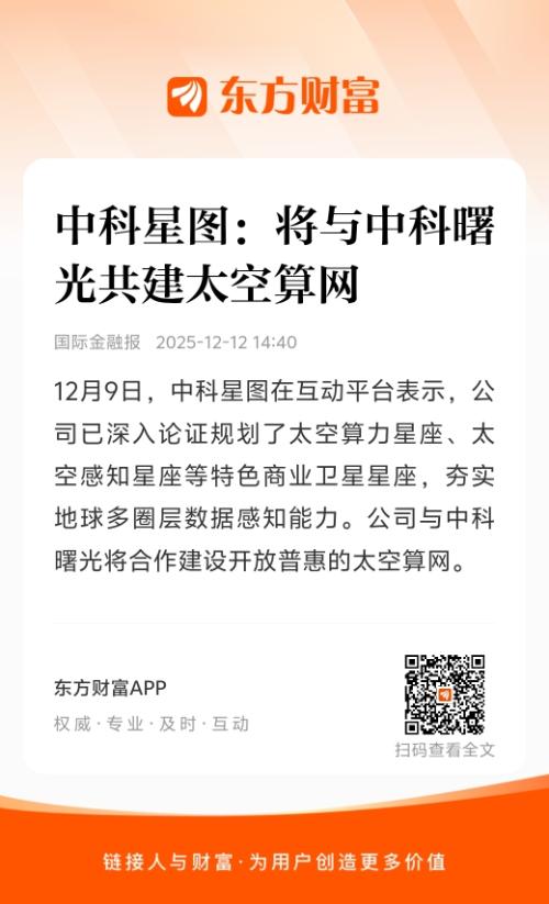 公司与中科曙光将合作建设开放普惠的太空算网。
