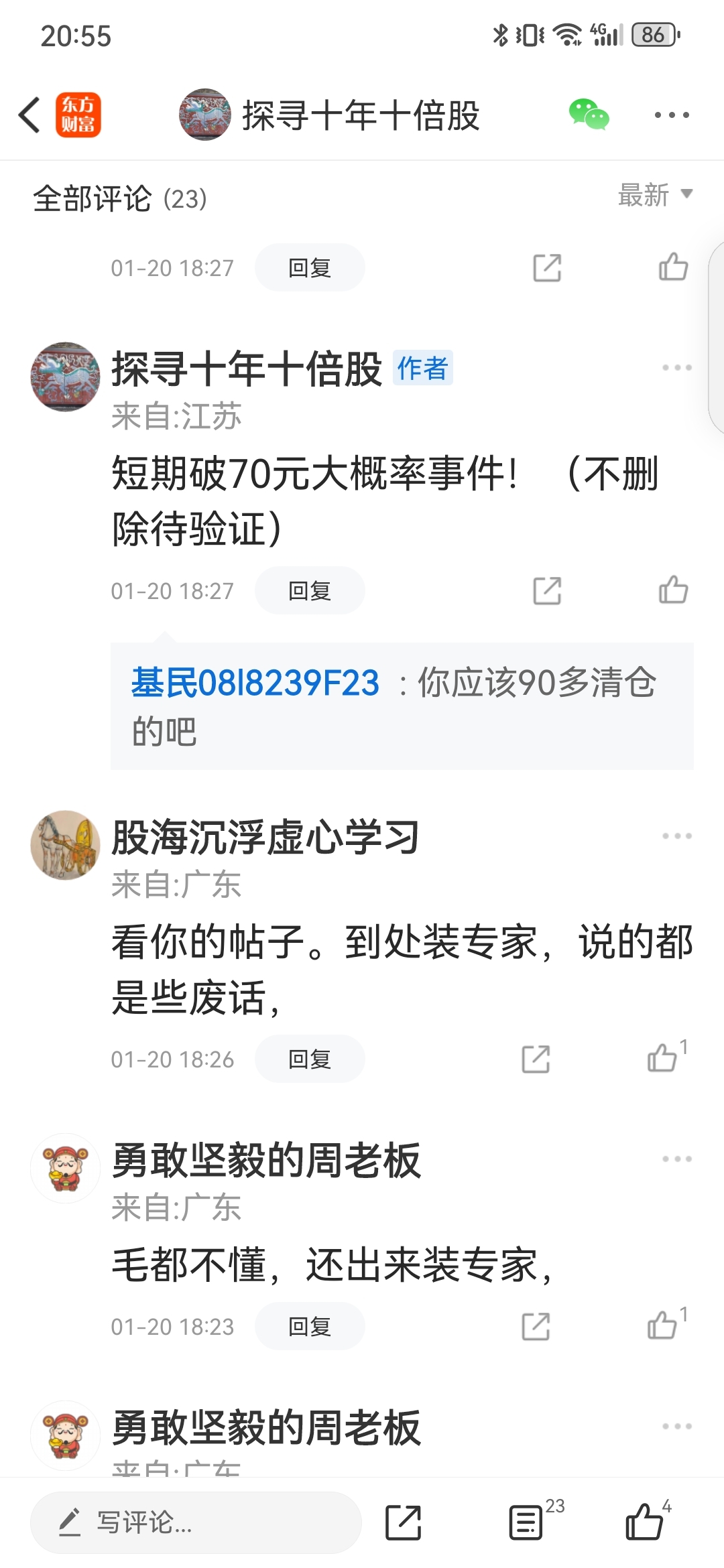 温馨提示: 1.根据《证券法》规定,禁止编造、传播虚假信息或者误导性信息,扰乱证券市场;2.用户在本社区发表的所有资料、言论等仅代表个人观点,与本网站立场无关,不对您构成任何投资建议。用户应基于自己的独立判断,自行决定证券投资并承担相应风险。《东方财富社区管理规定》