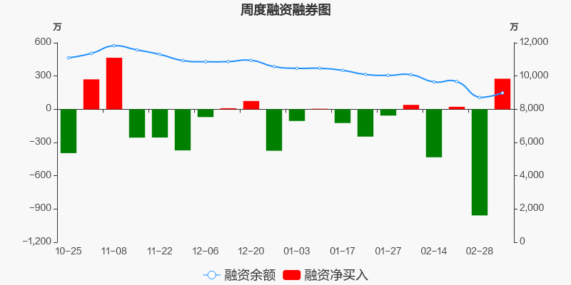 铁科轨道本周(2025/03/03-2025/03/07)累计涨幅达2.36%,截至3月7日最新股价报收20.86元。从增量上来看,3月3日至3月7日融资买入交易规模1388.42万元,融资偿还规模1113.13万元,期内融资净买入275.29万元。从存量上来看,截止3月9日,铁科轨道融资融券余额8982.64万元,其中融资余额规模8982.64万元,融券余额规模0元。