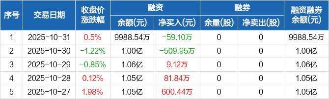 杭华股份:融资净偿还59.1万元,融资余额9988.54万元(10-31)