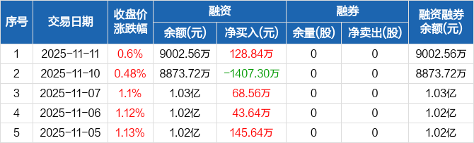 杭华股份:融资净买入128.84万元,融资余额9002.56万元(11-11)