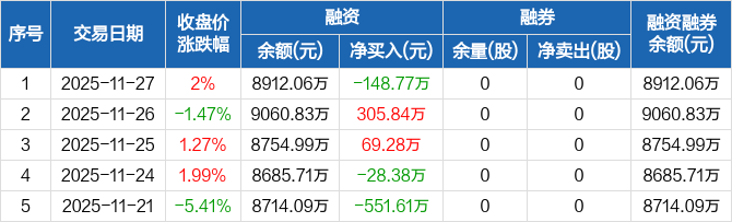 信宇人:融资净偿还148.77万元,融资余额8912.06万元(11-27)