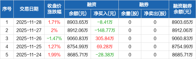 信宇人:融资净偿还8.41万元,融资余额8903.65万元(11-28)