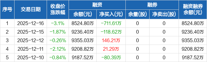 信宇人:融资净偿还711.61万元,融资余额8524.8万元(12-16)
