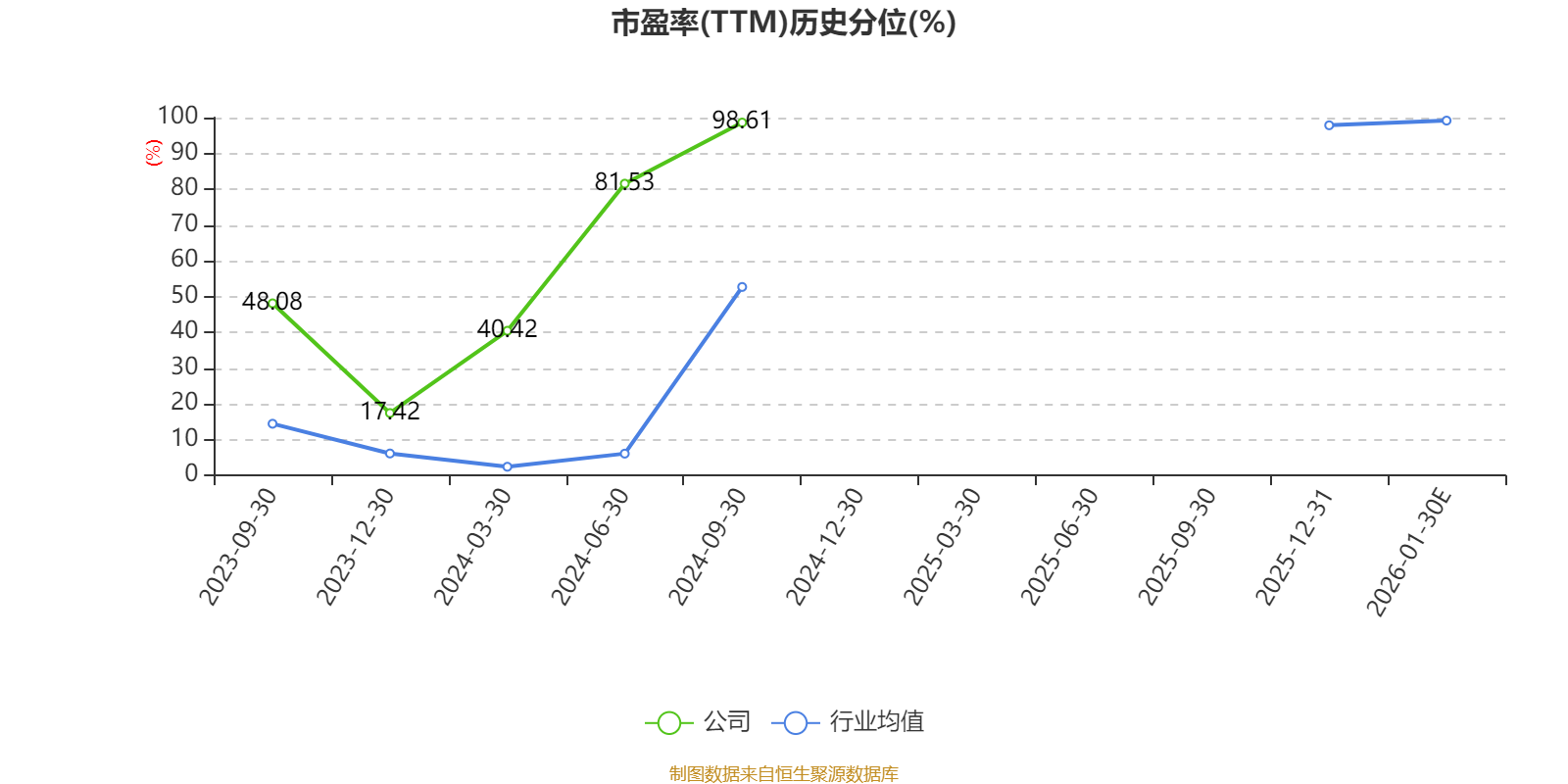 市盈率、市净率为负时,不显示当期分位数,会导致折线图中断。