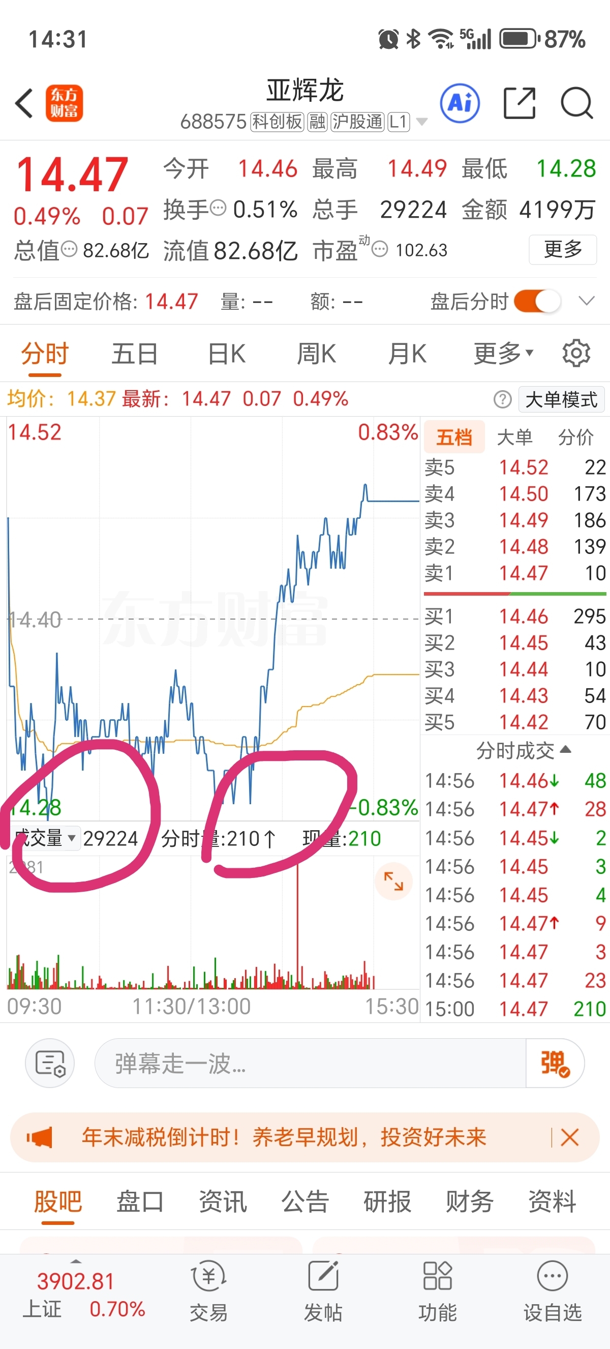 $亚辉龙(SH688575)$ 14.30两次抄底,昆鸟还有两天减持时间,如果再跌再加仓,长线持有,静待花开