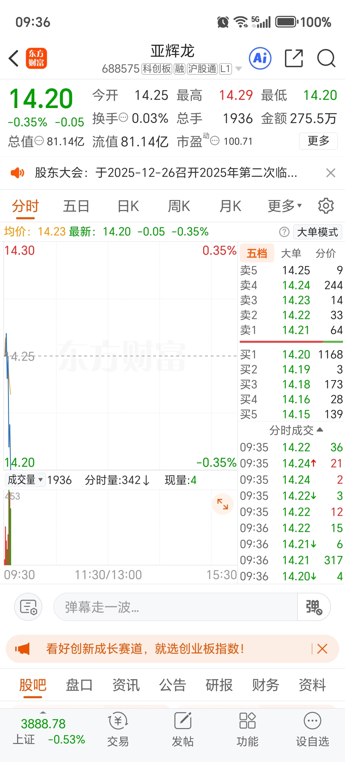 $亚辉龙(SH688575)$ 14.20三成仓位,跌破继续加仓干