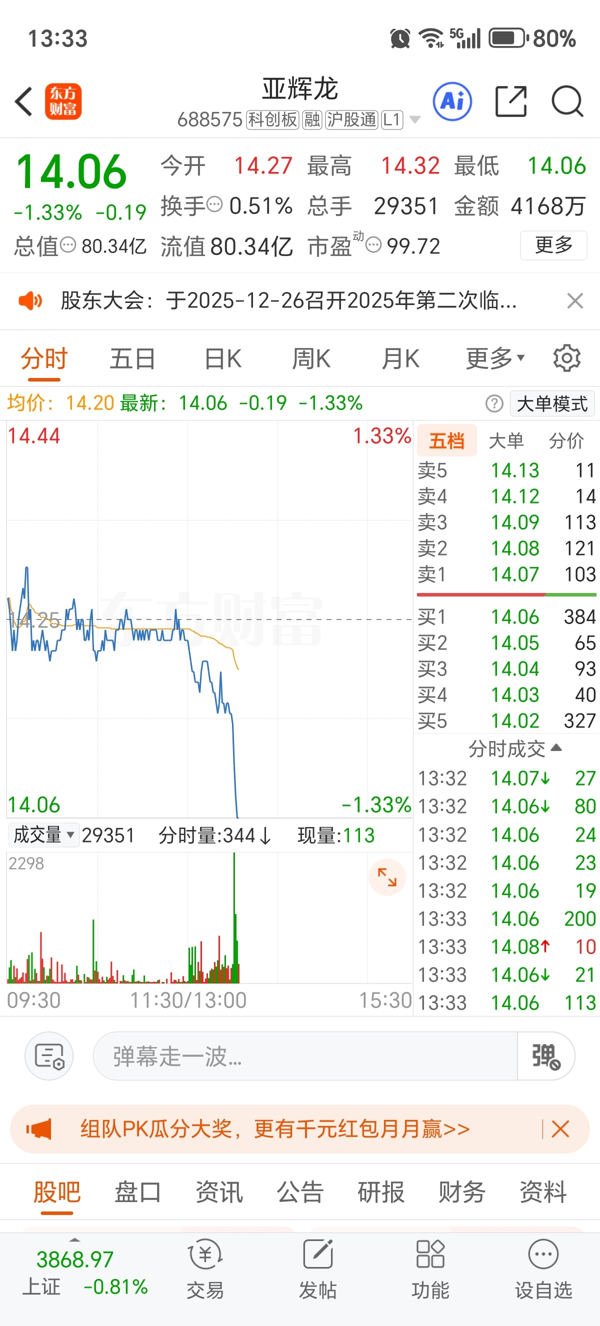 $亚辉龙(SH688575)$ 14.06元半仓来抄底