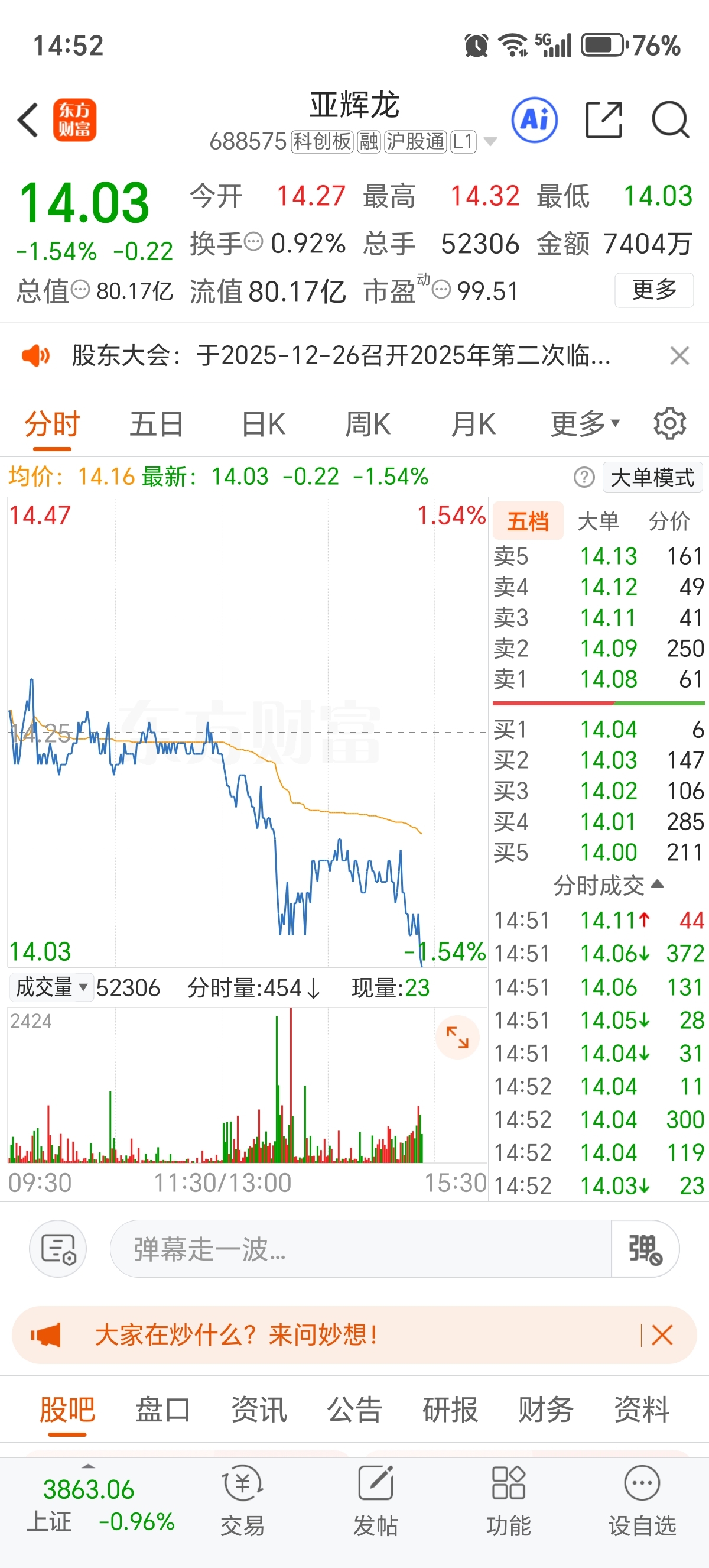$亚辉龙(SH688575)$ 14.03满仓梭哈