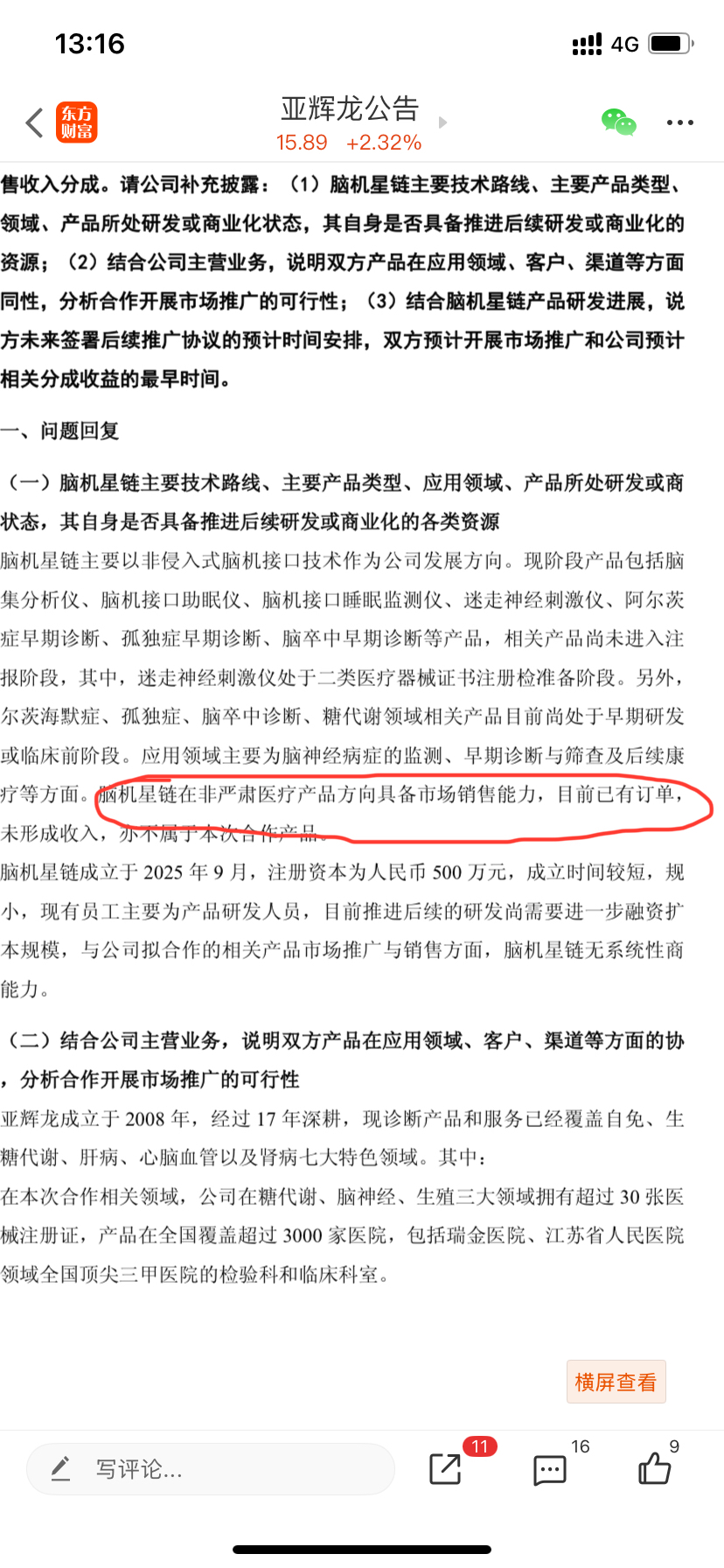 脑机星链在非严肃医疗产品方向具备市场销售能力,目前已有订单。目前已有订单!
