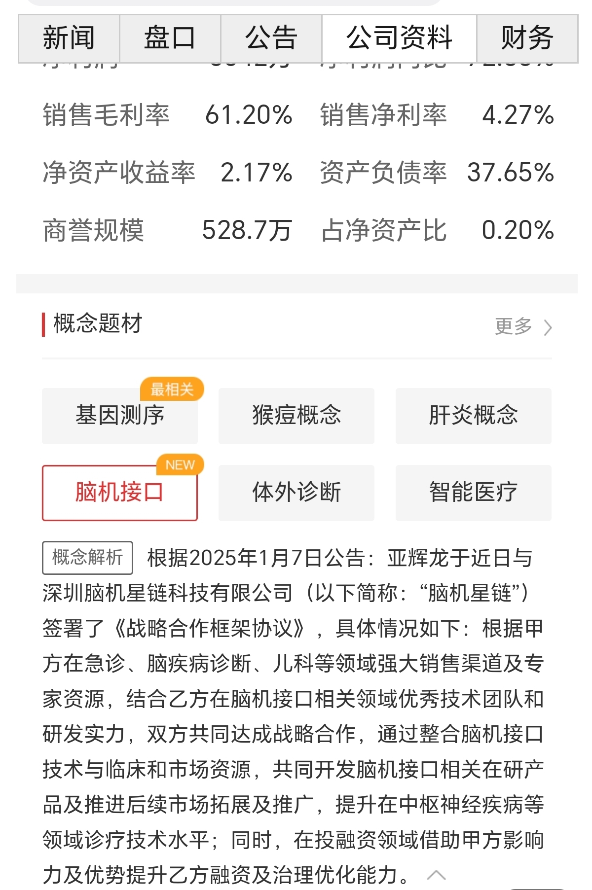 $亚辉龙(SH688575)$ 同花顺挺快,已添加脑机接口概念
