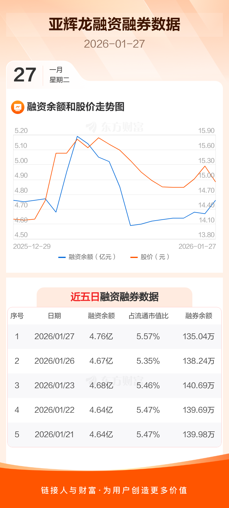 交易所最新数据显示,亚辉龙于2026年1月27日获融资买入1845.88万元,融资偿还999.18万元,当日融资净买入846.69万元。目前,该股融资余额4.76亿,占流通市值比例为5.57%。