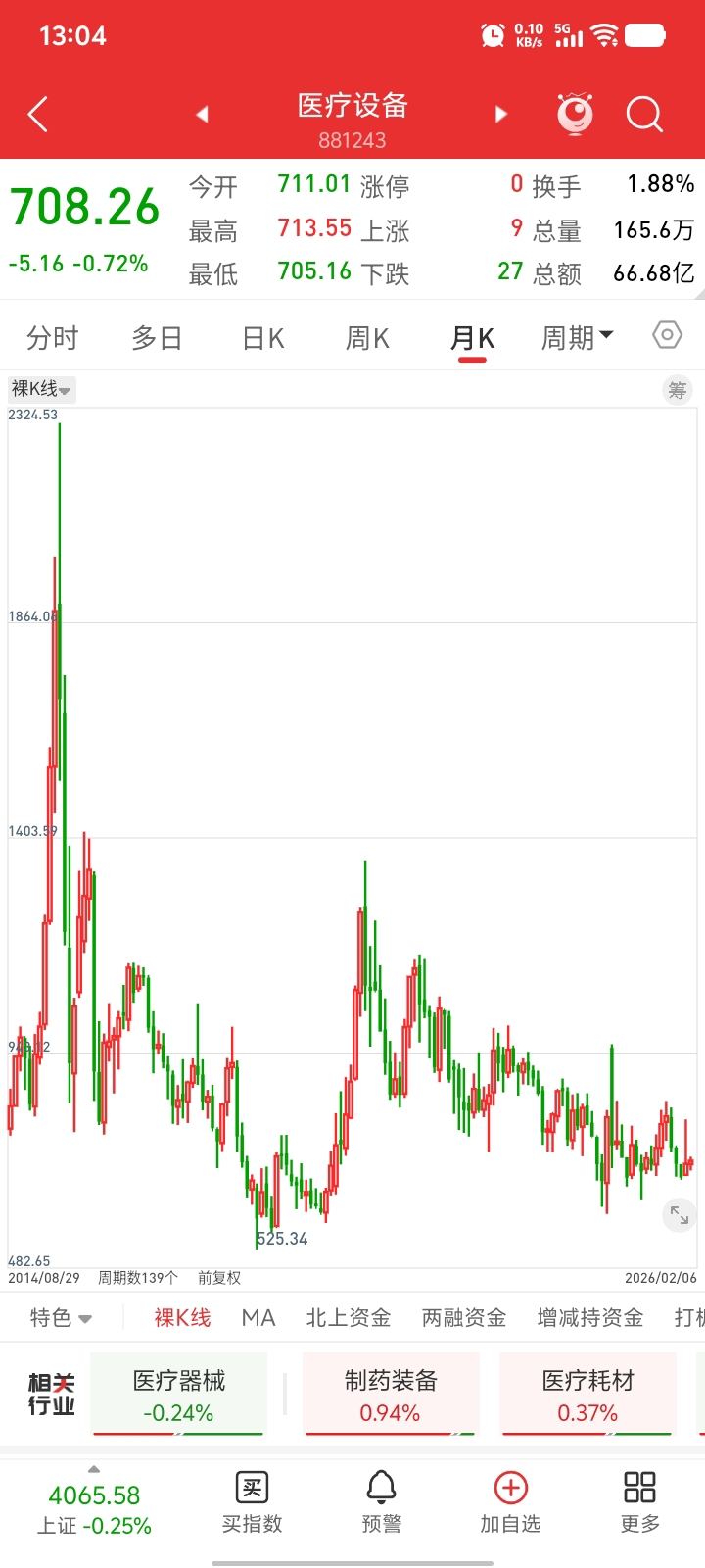 医疗设备此轮牛市倒第一板块,没政策扶持,赶不上亏损地产、爆炒赛道。不管是否获利,