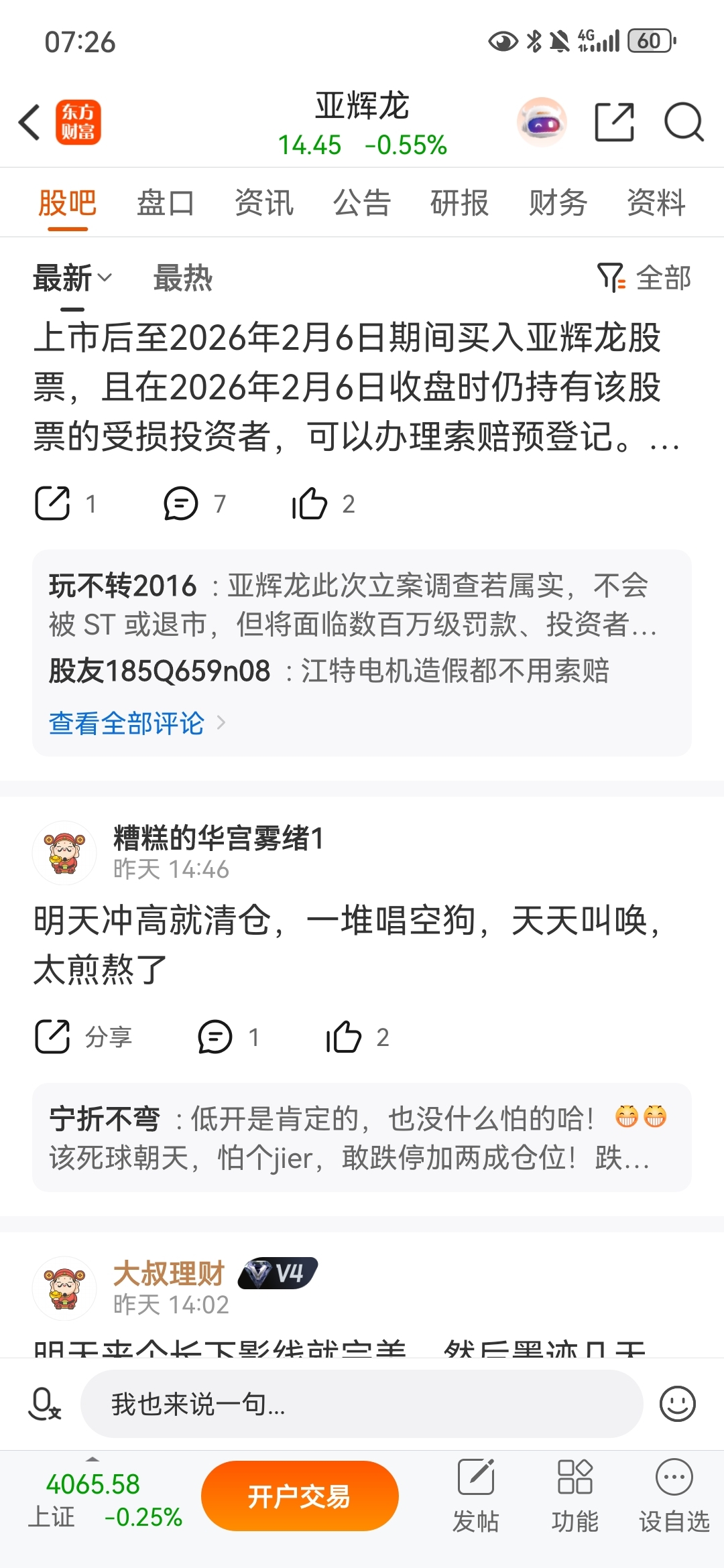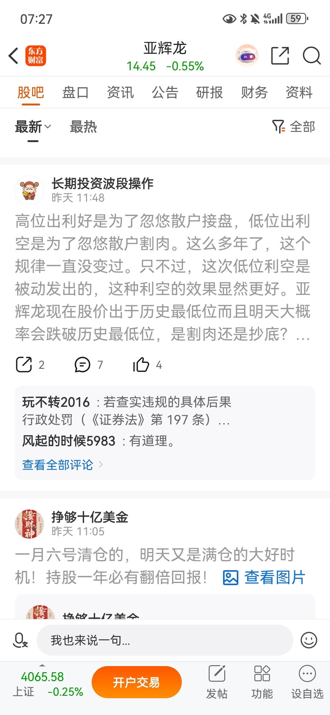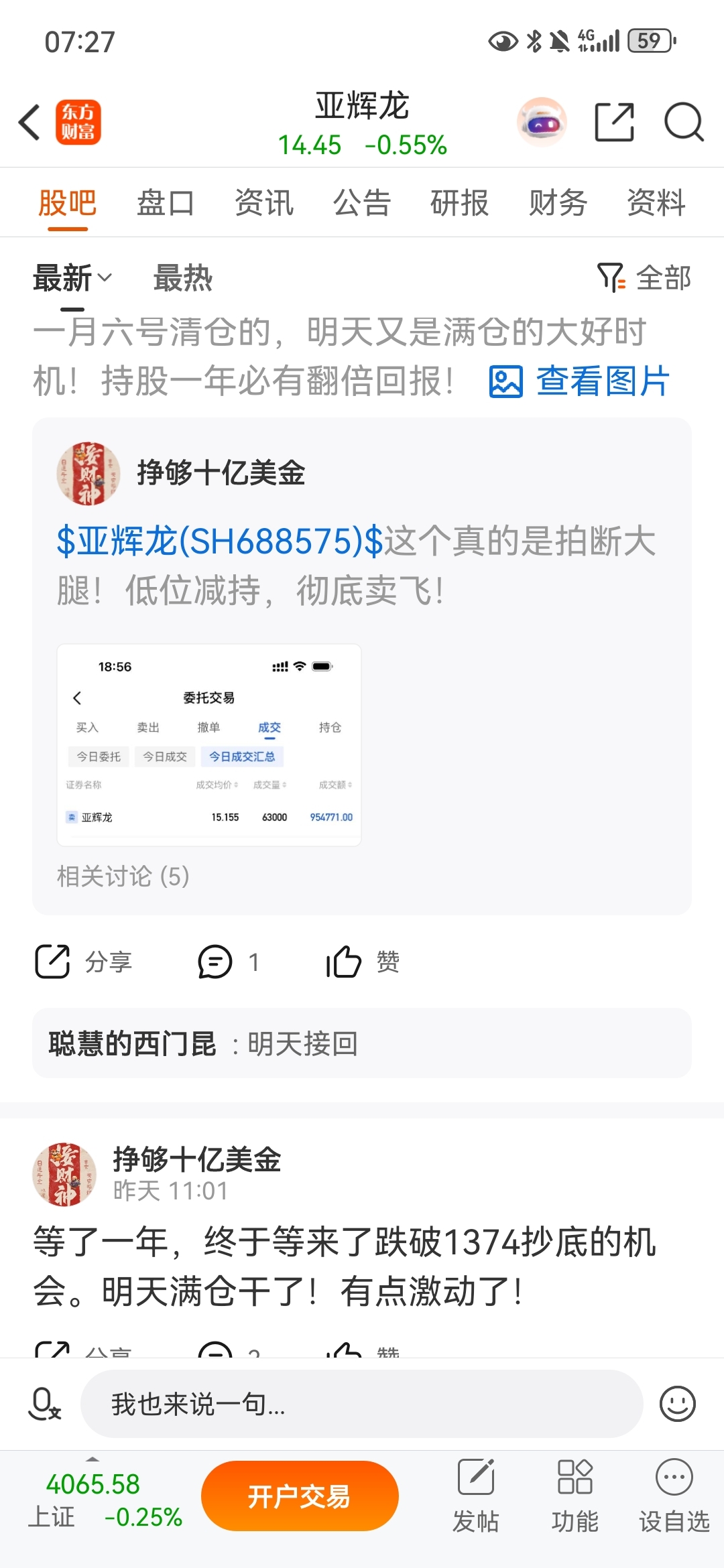 温馨提示: 1.根据《证券法》规定,禁止编造、传播虚假信息或者误导性信息,扰乱证券市场;2.用户在本社区发表的所有资料、言论等仅代表个人观点,与本网站立场无关,不对您构成任何投资建议。用户应基于自己的独立判断,自行决定证券投资并承担相应风险。《东方财富社区管理规定》