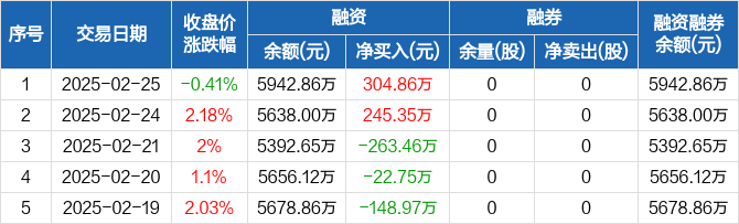西山科技:融资净买入304.86万元,融资余额5942.86万元(02-25)