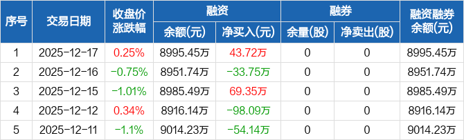 西山科技:融资净买入43.72万元,融资余额8995.45万元(12-17)