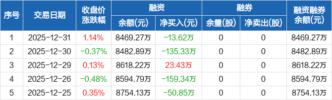 西山科技:融资净偿还13.62万元,融资余额8469.27万元(12-31)