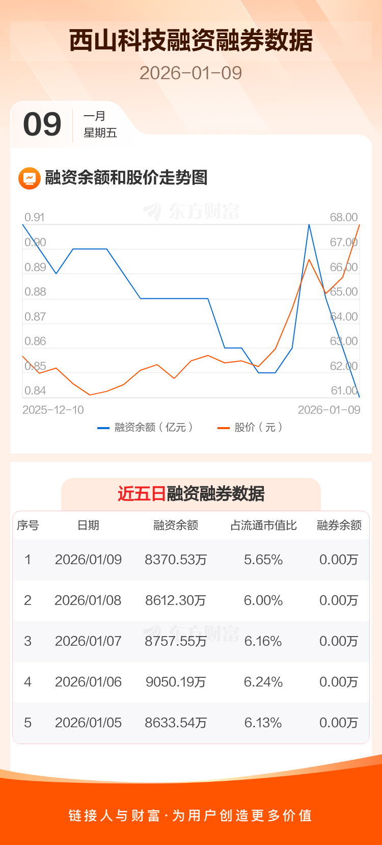 交易所最新数据显示,西山科技于2026年1月9日获融资买入319.56万元,融资偿还561.33万元,当日融资净偿还241.77万元。目前,该股融资余额8370.53万,占流通市值比例为5.65%。