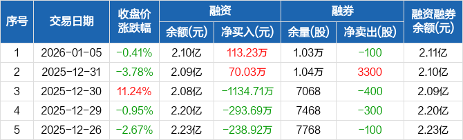 浙海德曼:融资净买入113.23万元,融资余额2.1亿元(01-05)
