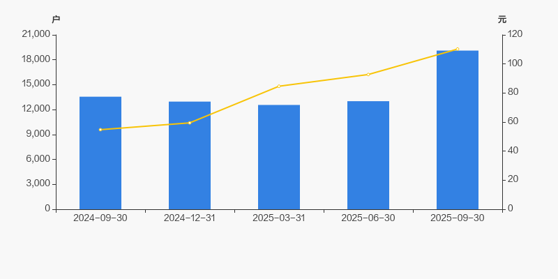 2024年9月30日至今,公司股东户数显著增长,区间涨幅为40.97%。2024年9月30日至2025年9月30日区间股价上涨101.30%。
