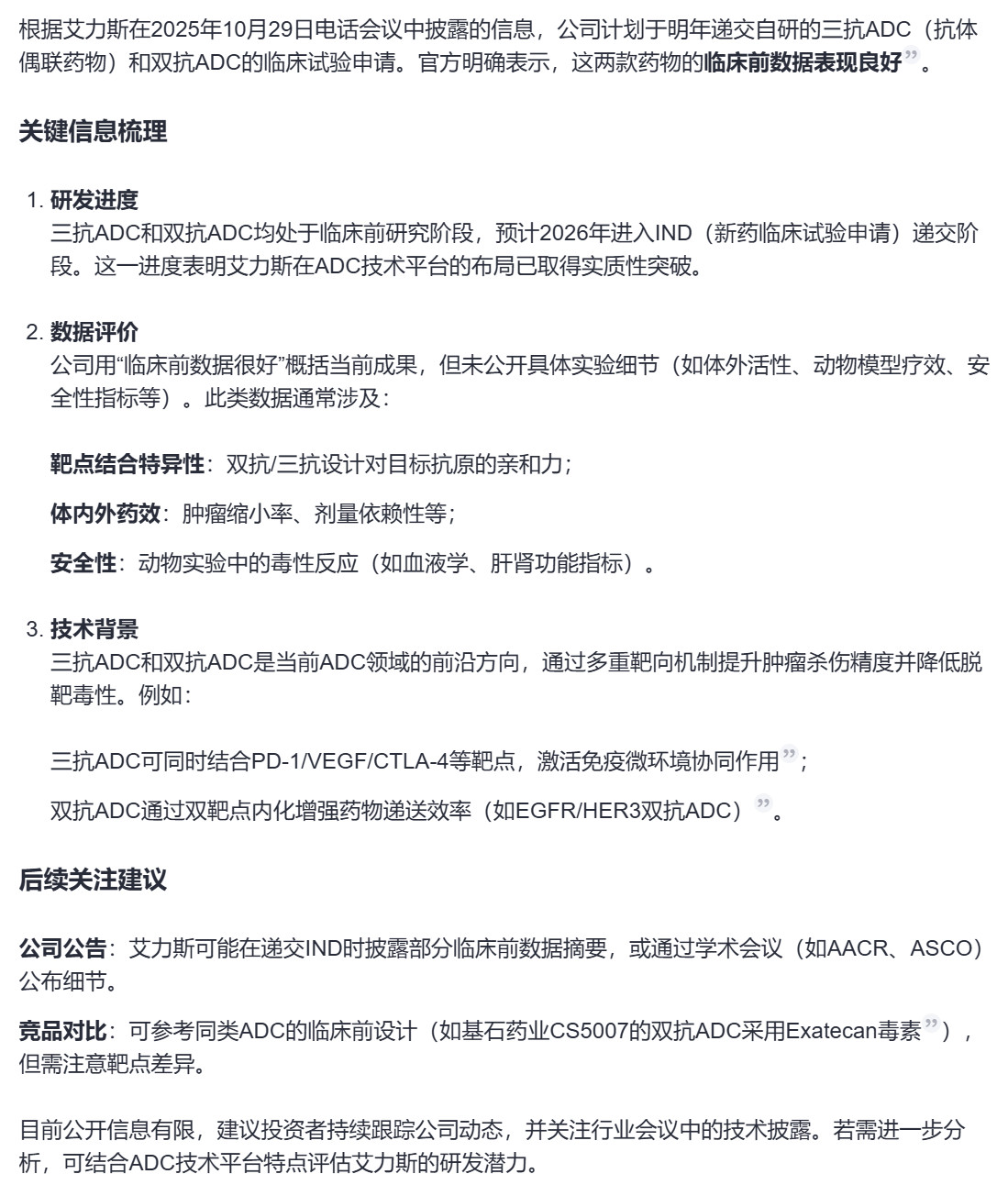 艾力斯自研三抗ADC和双抗ADC的临床前数据情况