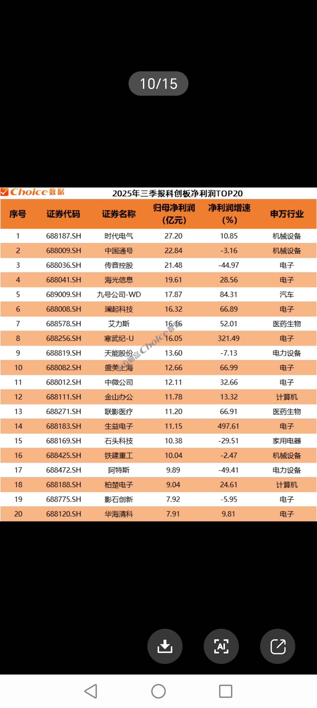 科创板三季报前20排名,艾力斯勉强及格,排第七,寒武纪第八