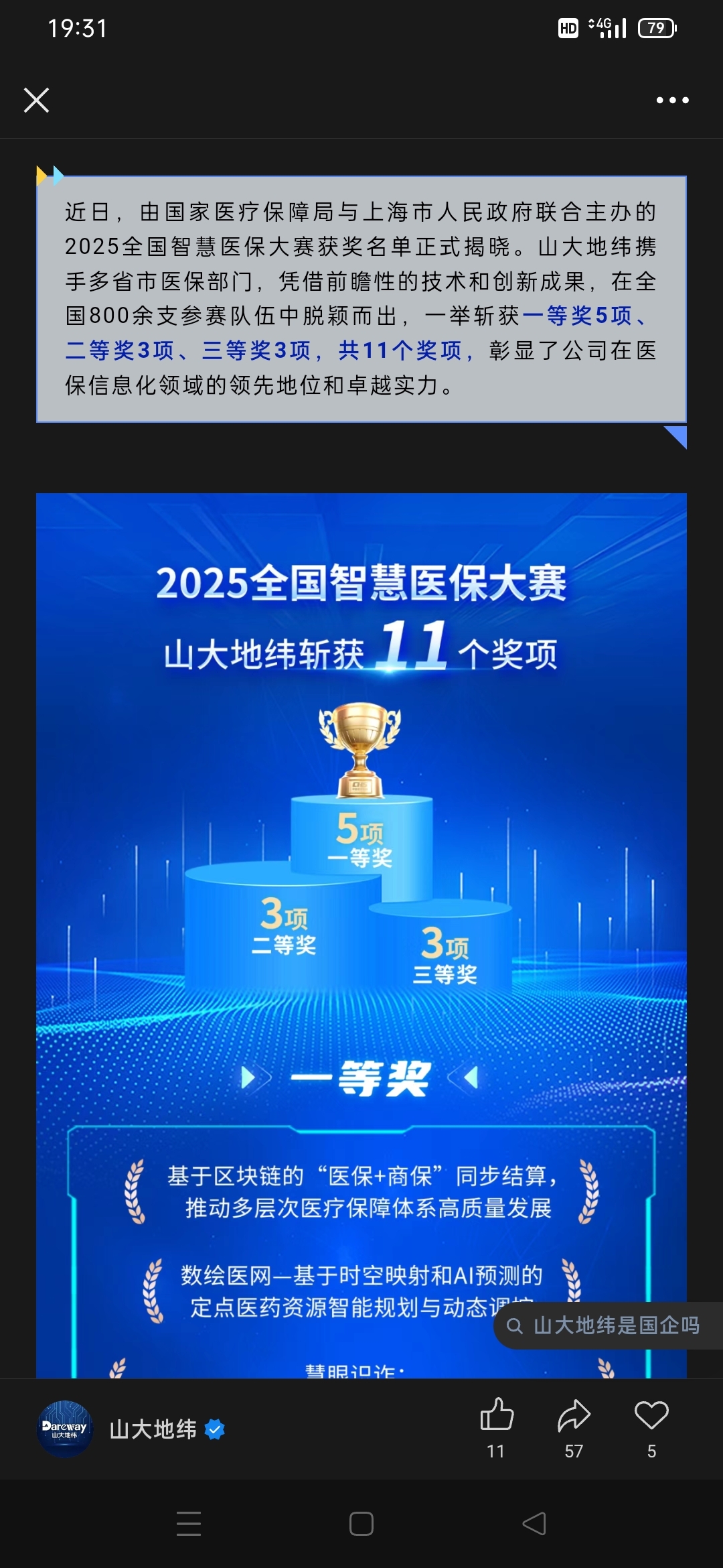 $山大地纬(SH688579)$ 拿了这么多奖,明天能不能涨两个点