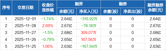 山大地纬:融资净偿还316.92万元,融资余额2.64亿元(12-01)