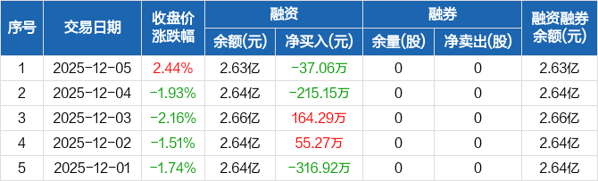山大地纬:融资净偿还37.06万元,融资余额2.63亿元(12-05)