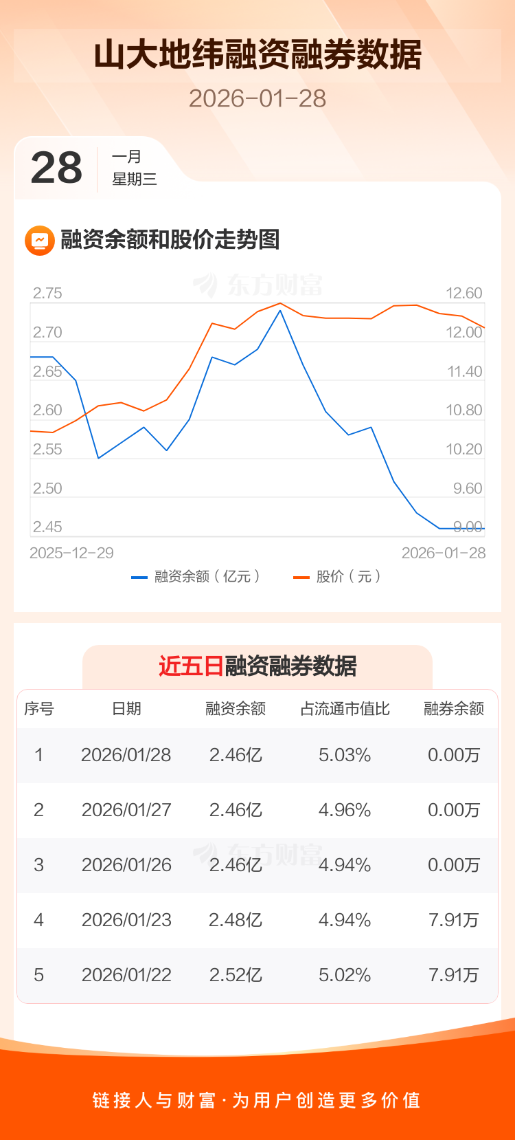 交易所最新数据显示,山大地纬于2026年1月28日获融资买入602.05万元,融资偿还597.19万元,当日融资净买入4.86万元。目前,该股融资余额2.46亿,占流通市值比例为5.03%。