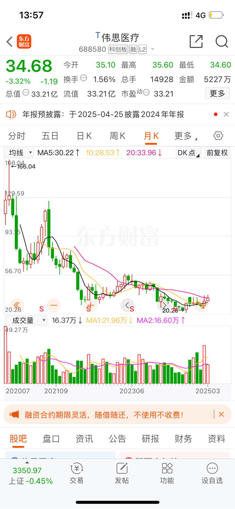 $伟思医疗(SH688580)$ 还是处于历史大底位置