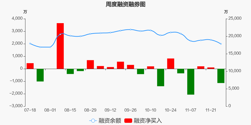 伟思医疗本周(2025/11/24-2025/11/28)累计涨幅达4.36%,截至11月28日最新股价报收45.23元。从增量上来看,11月24日至11月28日融资买入交易规模1658.77万元,融资偿还规模2800.48万元,期内融资净偿还1141.7万元。从存量上来看,截止11月30日,伟思医疗融资融券余额1.78亿元,其中融资余额规模1.78亿元,融券余额规模0元。