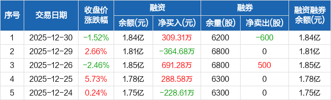 伟思医疗:融资净买入309.31万元,融资余额1.84亿元(12-30)