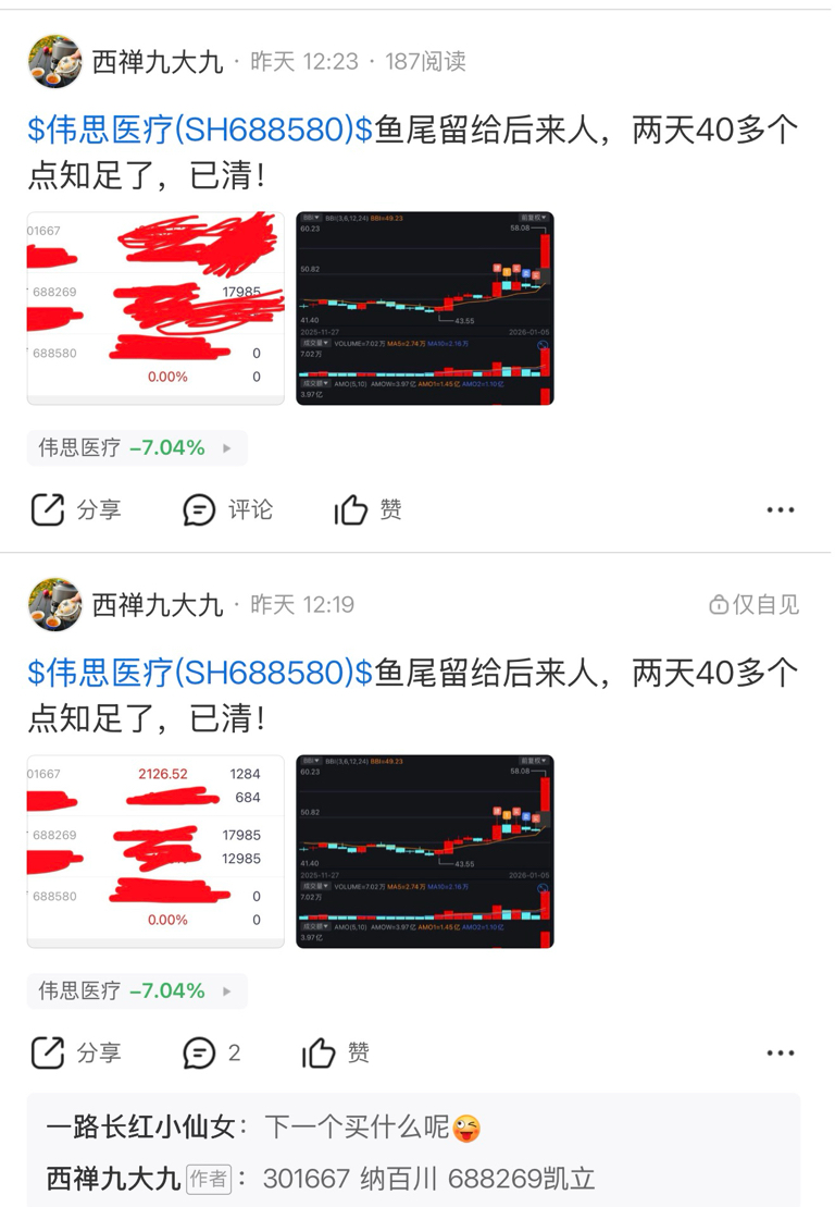 $伟思医疗(SH688580)$ 早盘没跑的,要被关起来吃几天面了;