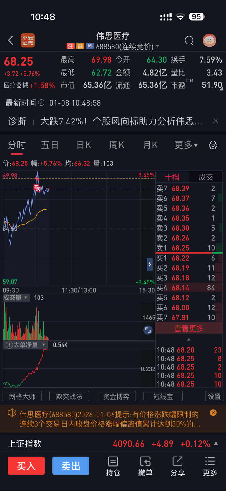 $伟思医疗(SH688580)$ 人家本来涨得好好的,被我买si了