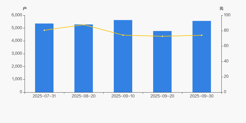 截至2025年9月30日,公司最新总股本为8097.88万股,其中流通股本为4141.64万股。户均持有流通股数量由上期的8666股下降至7440股,户均流通市值55.16万元。