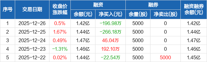 安杰思:融资净偿还196.98万元,融资余额1.42亿元(12-26)