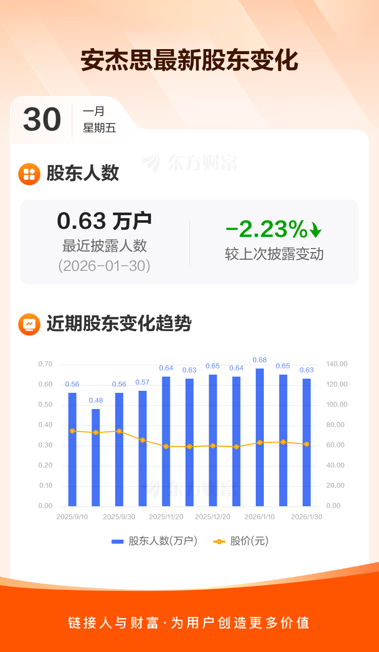 安杰思:截至1月30日最新股东户数6314户,较上期减少2.23%