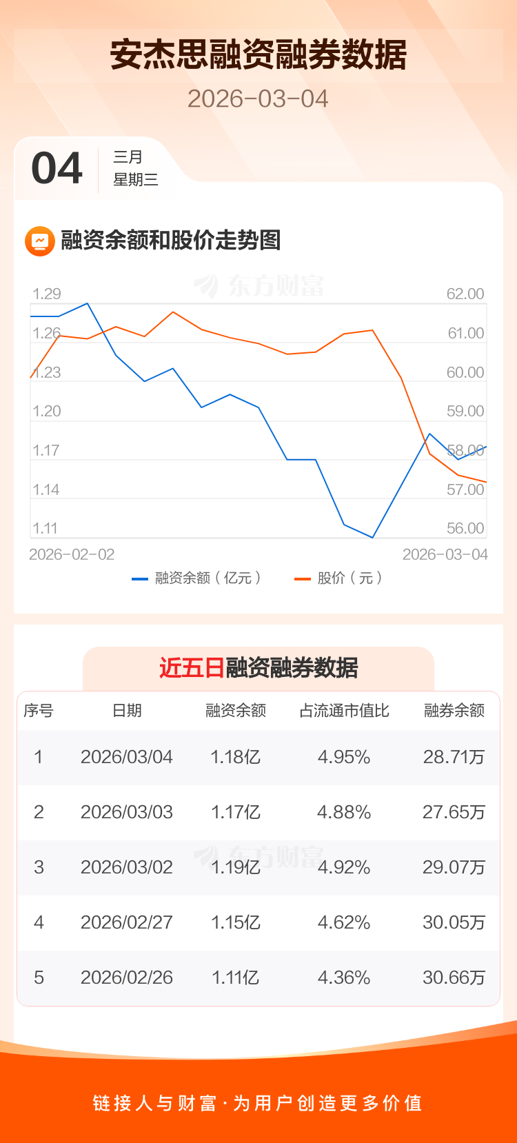 交易所最新数据显示,安杰思于2026年3月4日获融资买入323.04万元,融资偿还180.88万元,当日融资净买入142.16万元。目前,该股融资余额1.18亿,占流通市值比例为4.95%。