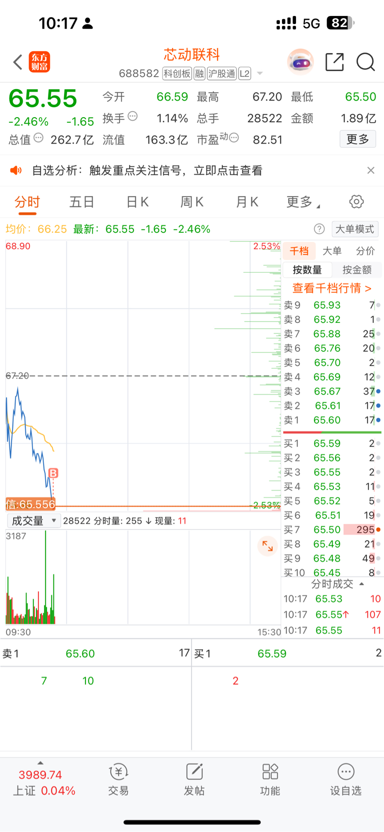 $芯动联科(SH688582)$ 完蛋设置在这里都买到了……看来奔年线去了,再设置6262加仓