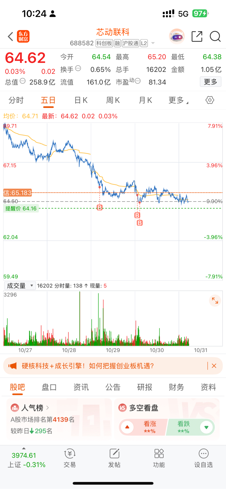 $芯动联科(SH688582)$  6414是上轮涨幅的起涨点,千万别给我跌破哦 目前属于极限洗盘拉扯,挺住的吃肉挺不住的割肉