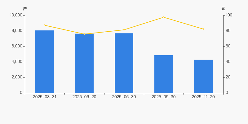 2025年3月31日至今,公司股东户数显著下降,区间跌幅为46.90%。2025年3月31日至2025年11月20日区间股价下降5.64%。