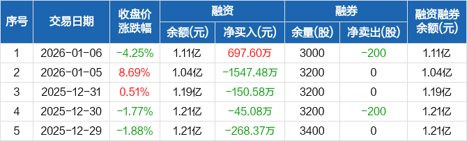 思看科技:融资净买入697.6万元,融资余额1.11亿元(01-06)