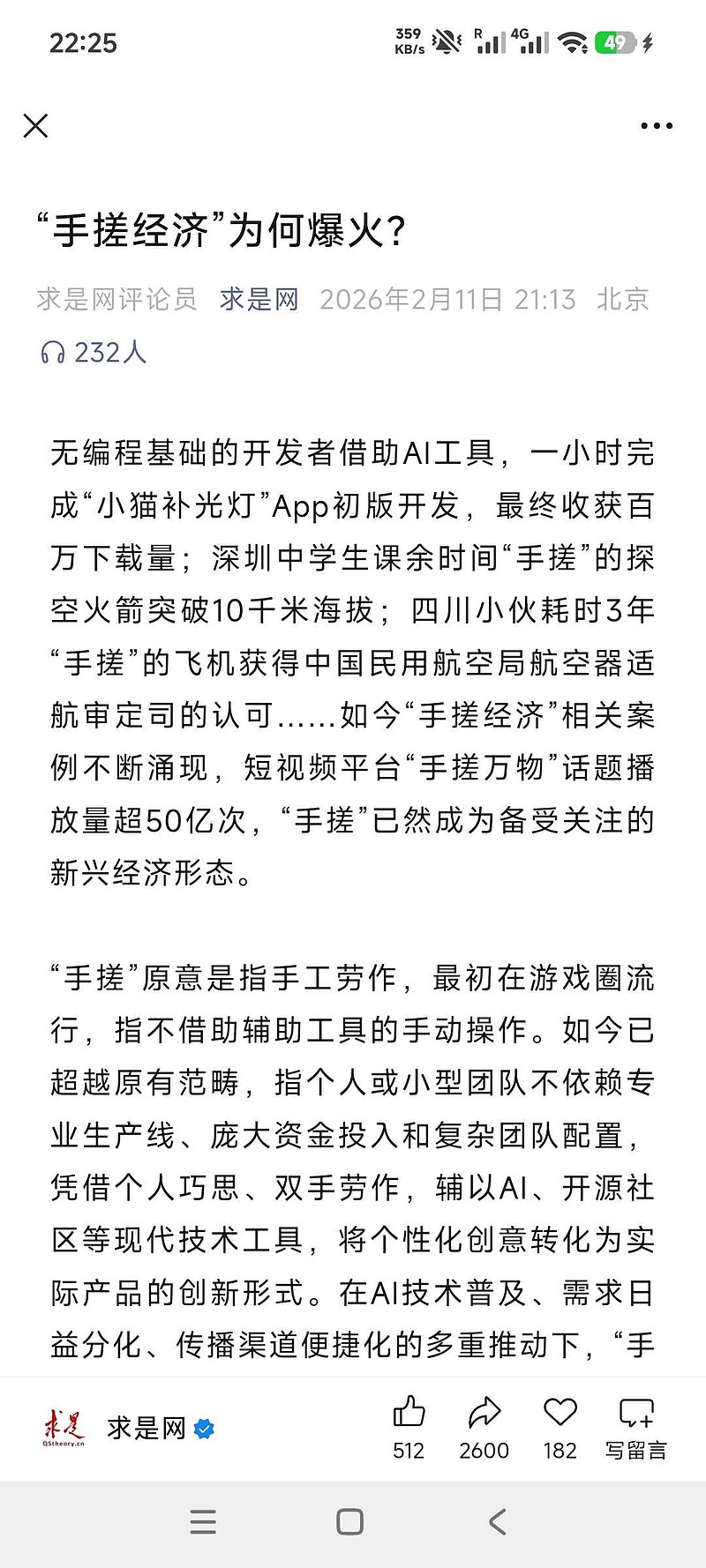 “手搓经济” 的核心是个人 / 小团队借助 AI、3D 扫描、3D 打印等技术工具,低成本将创意转化为产品,覆盖数字产品、智能硬件、航空航天等领域。