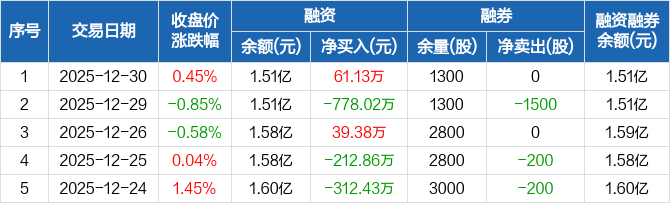 上海合晶:融资净买入61.13万元,融资余额1.51亿元(12-30)