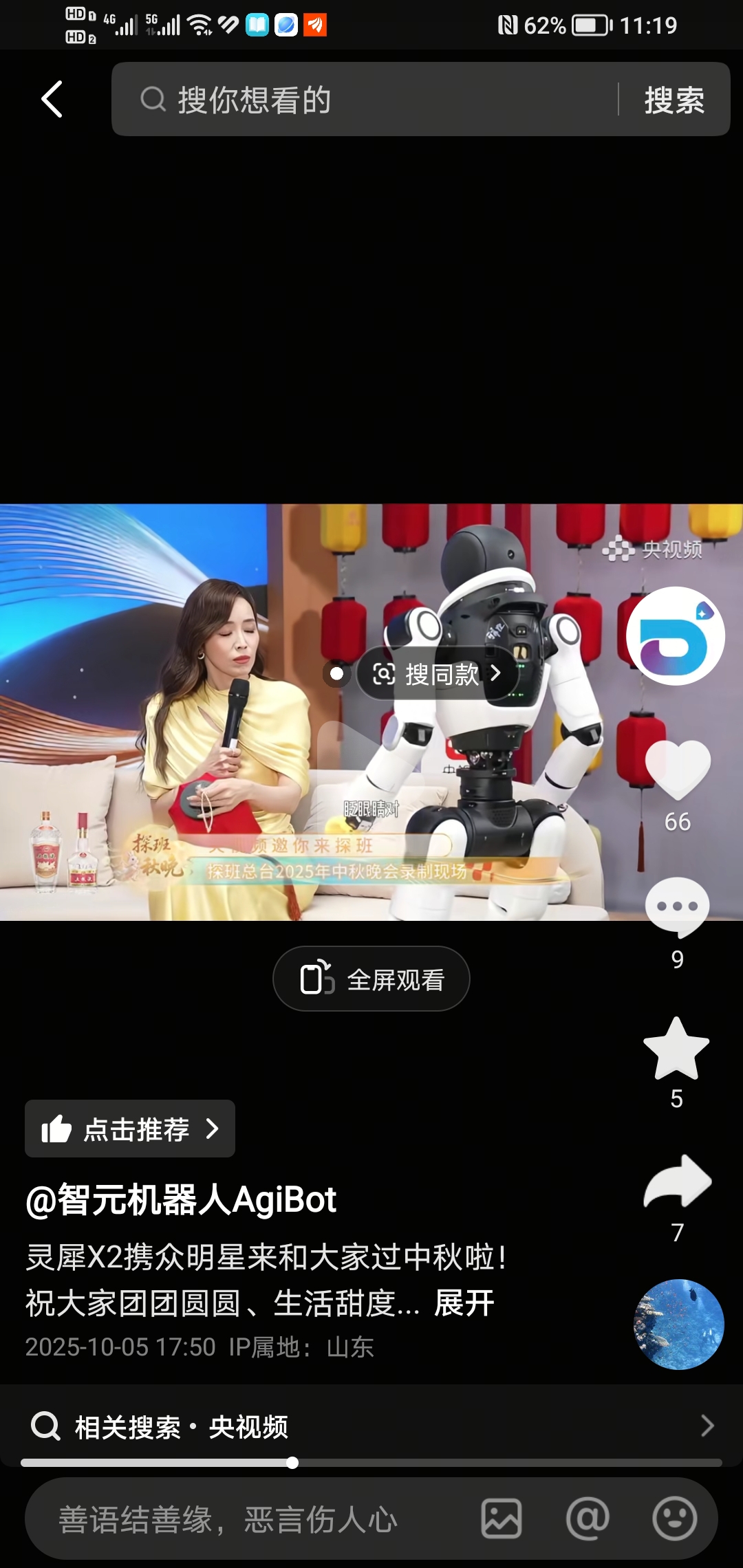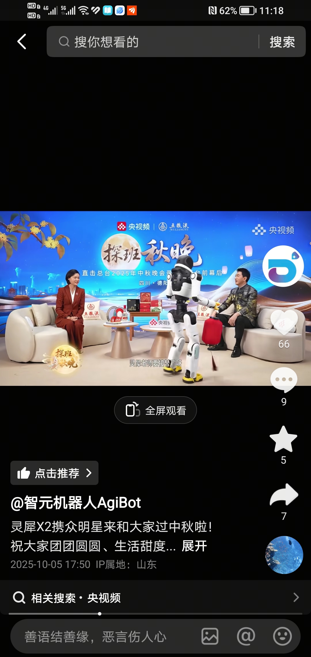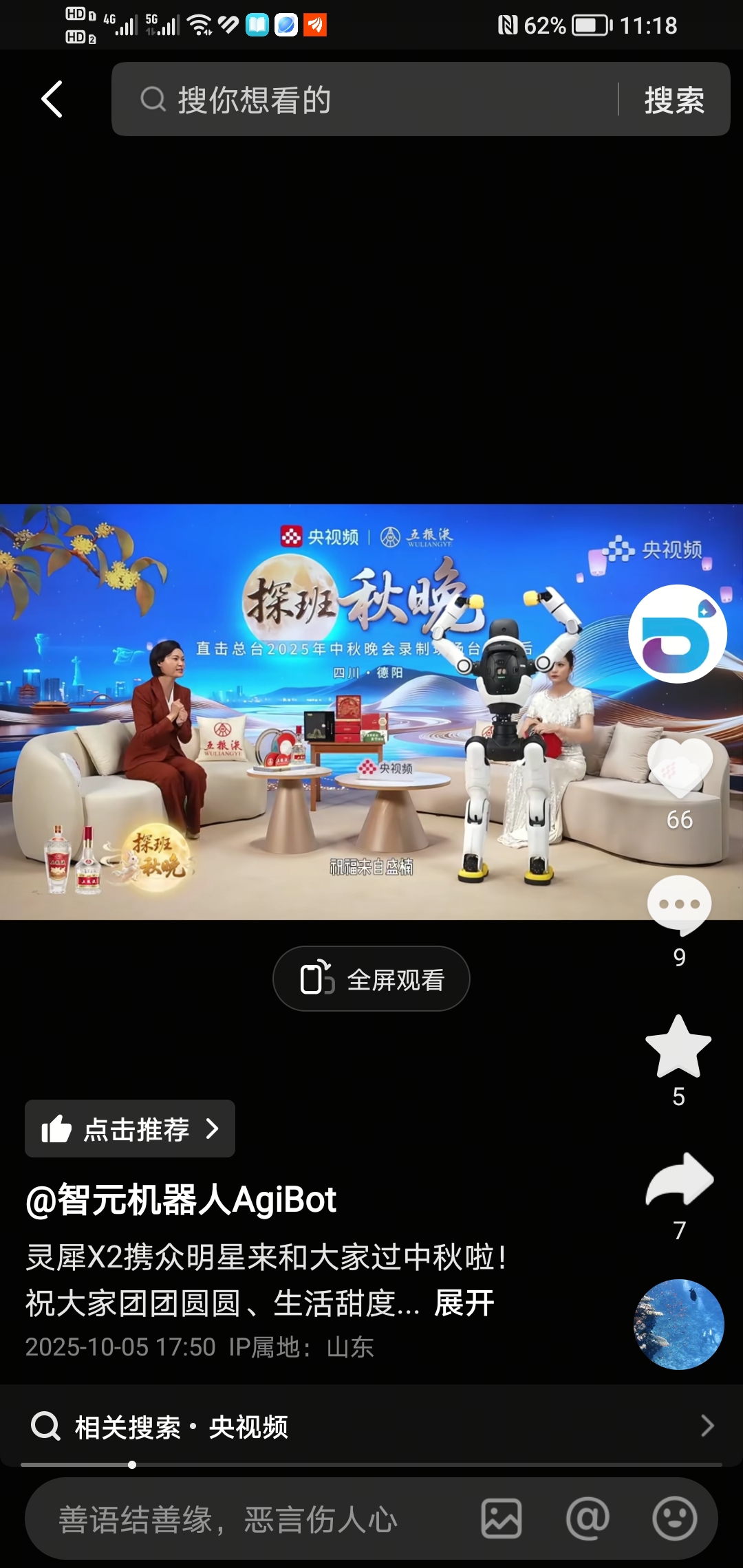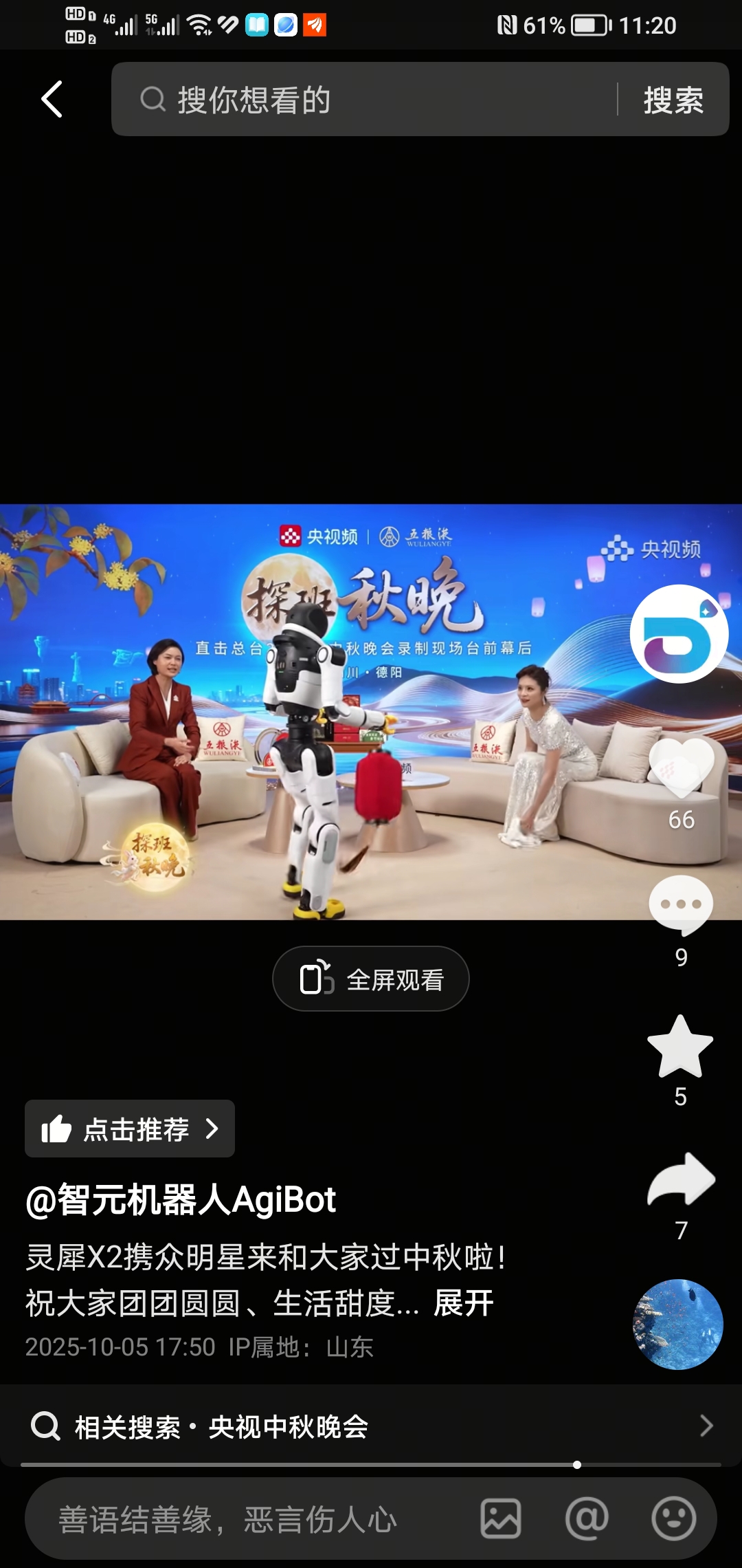 智元机器人探班央视秋晚,场面火爆,热度爆棚,现在热度最大当属智元机器人