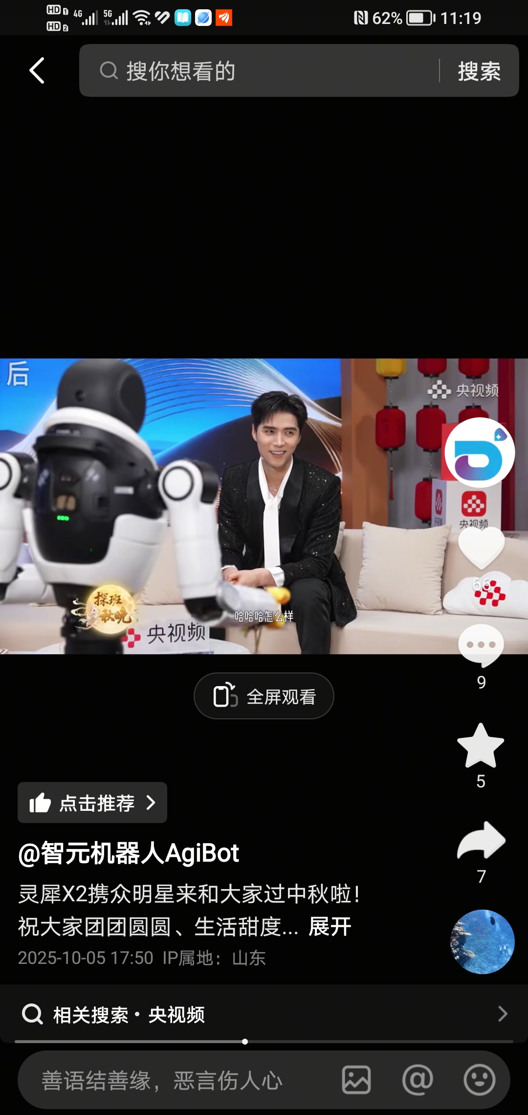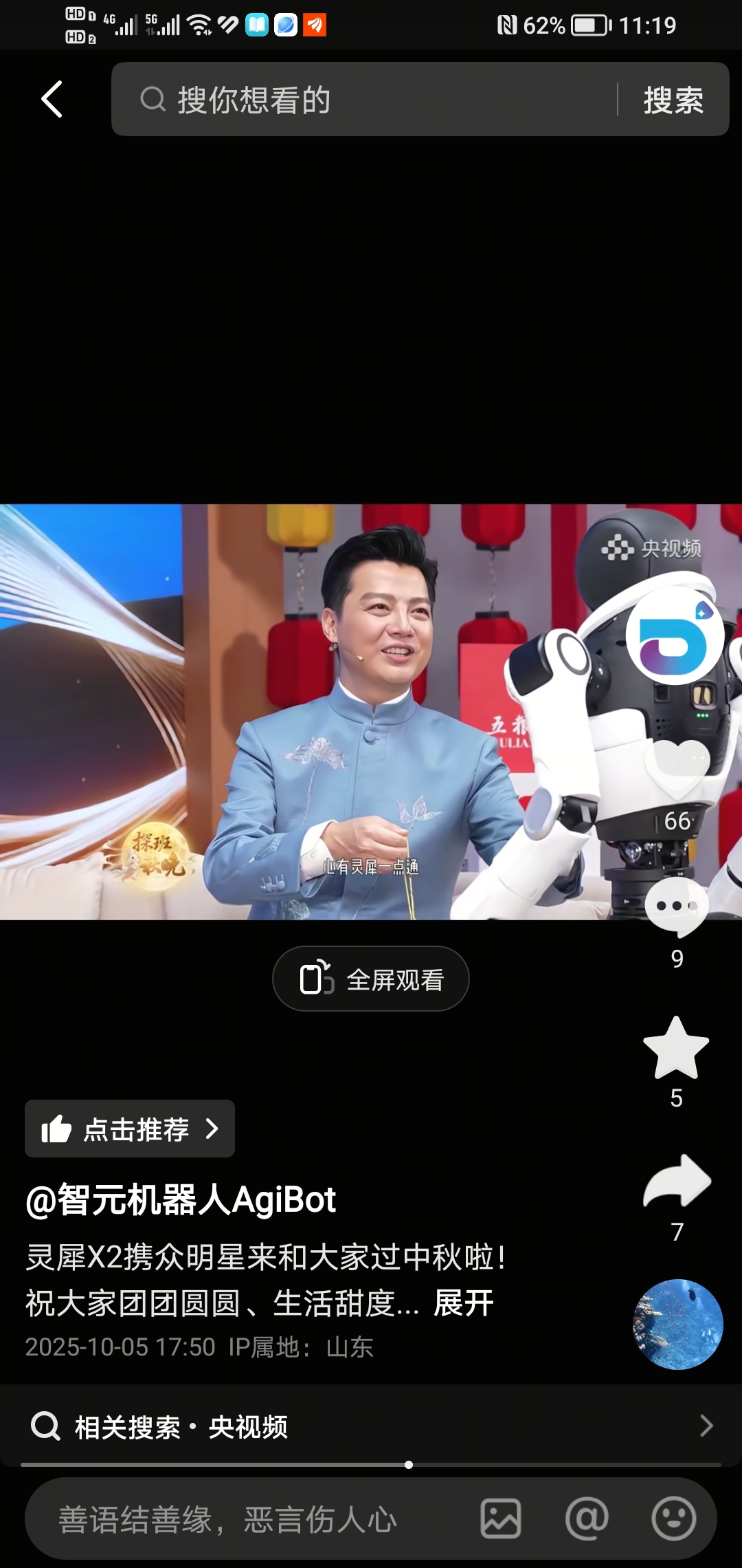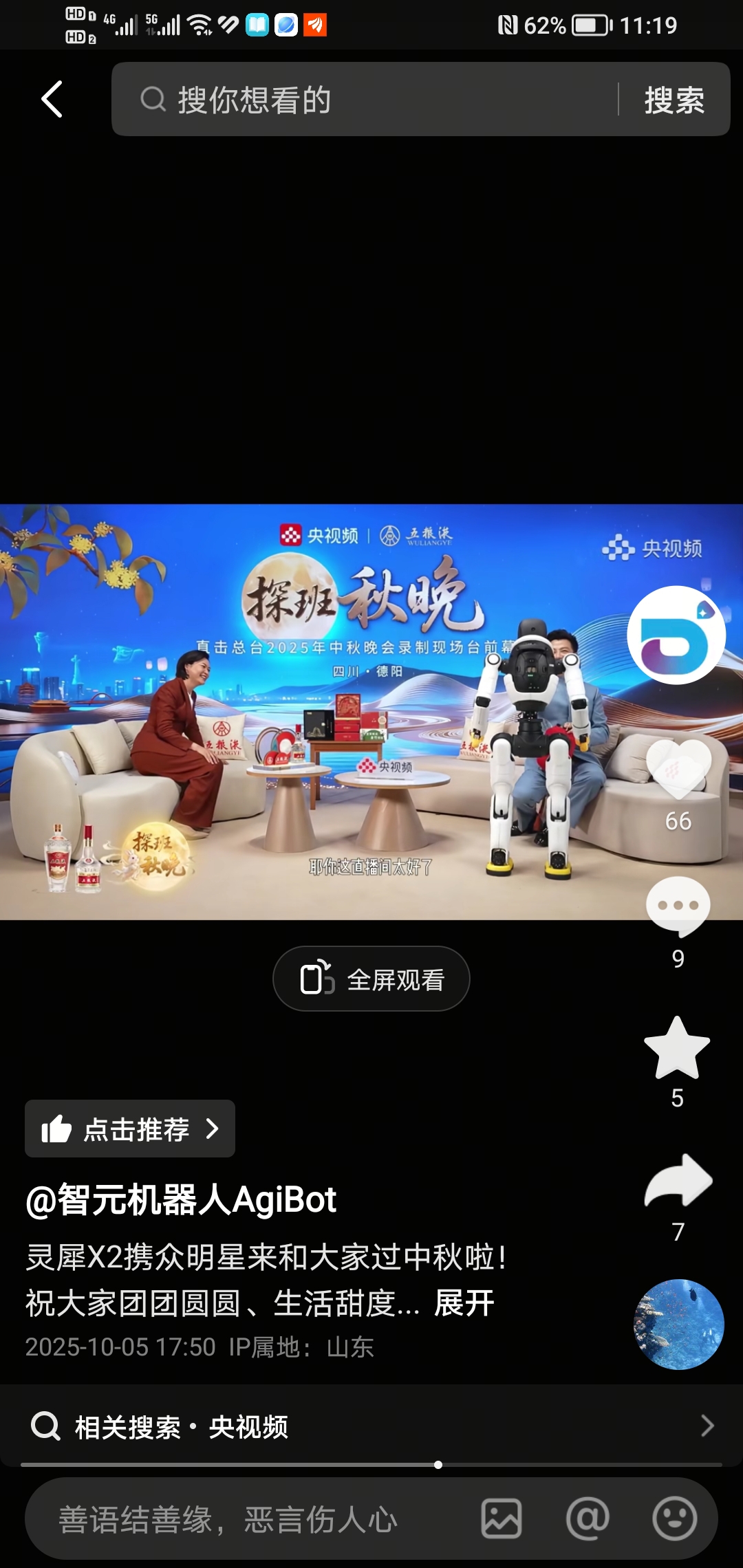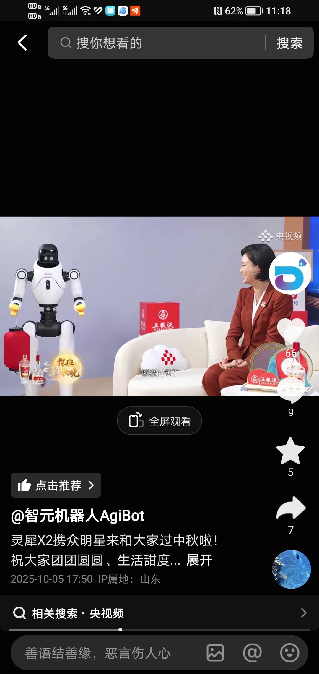 智元机器人探班央视秋晚,场面火爆,热度爆棚,现在热度最大当属智元机器人